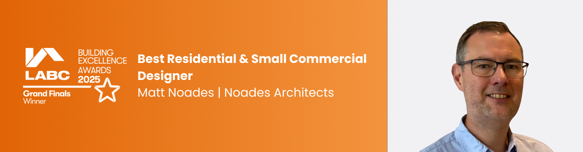 LABC is delighted to announce that the WINNER of the Best Residential & Small Commercial Designer is Matt Noades, Noades Architects.